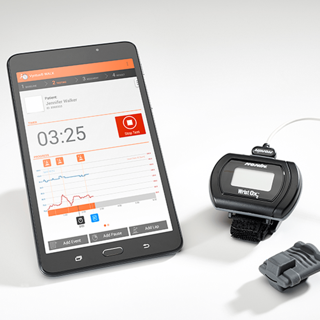 Vyntus™ WALK allows patients to perform an untethered six-minute walk test (6MWT) by wearing wireless sensors that communicate data to a technician-held tablet PC. Standardize testing to the recommended is 6MWT protocol, because consistent testing yields consistent data for comparison