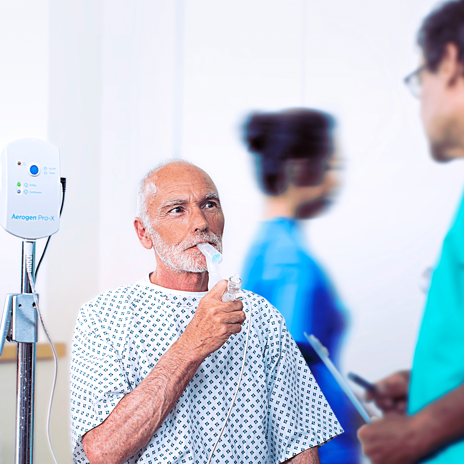 Throughout the hospital, the Aerogen Pro-X Controller powers the Aerogen Solo in one easy to use device. Powering Aerogen technology at every stage of patient care including mechanical ventilation, HFNC, NIV, and spontaneous breathing. The Aerogen Pro-X Controller portable power source with 30-minute and continuous modes is specifically designed to provide high-performance aerosol medication treatments throughout the hospital.