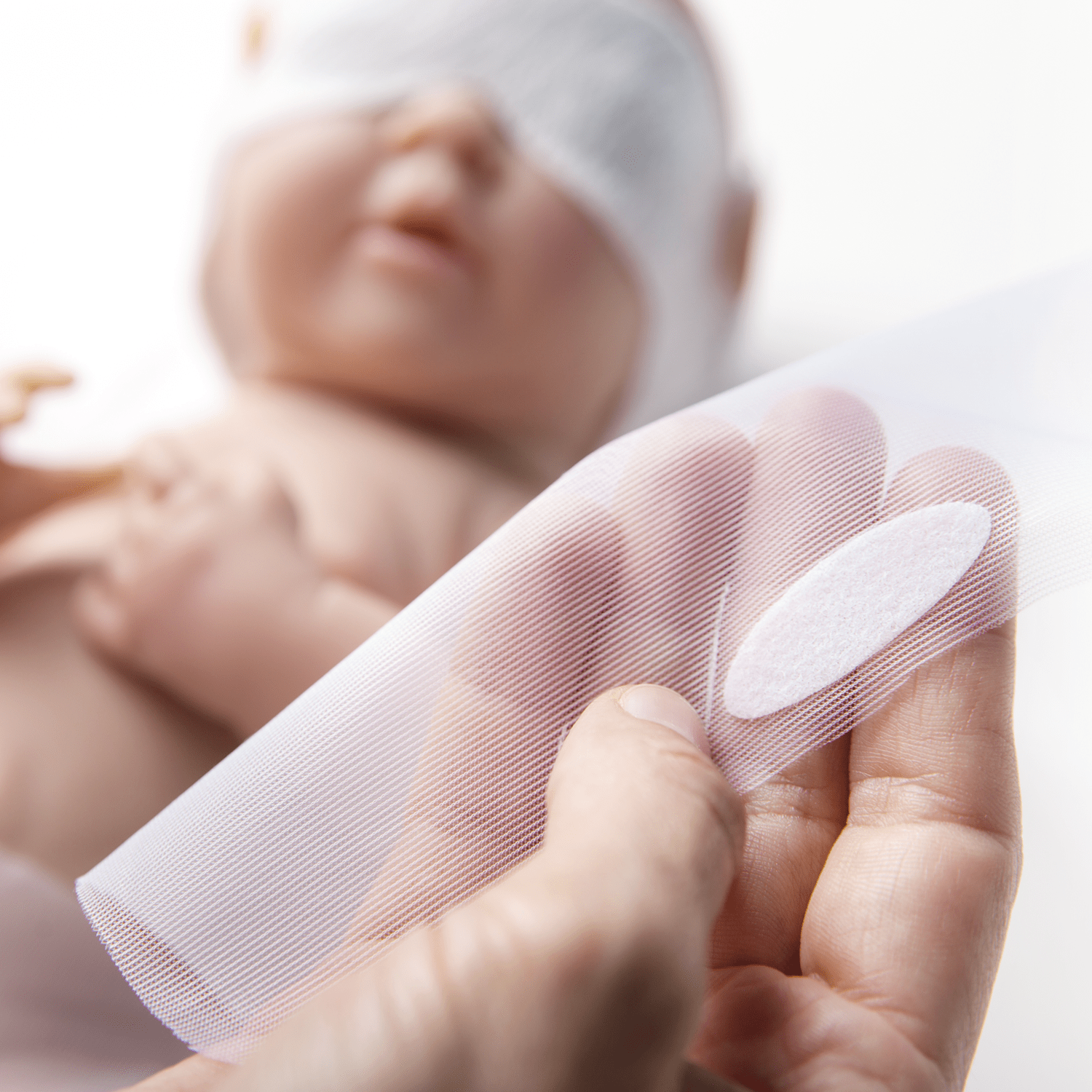 Effectiveness – combined with security and stability with our Bilitex positioning aid specifically developed for phototherapy. The little patients are prone to stretch patterns and nervous movements, particularly during therapeutic phases. This is due to lack of muscle tone and the unbounded surroundings, which cost a lot of energy. With the Bilitex positioning aid, the preemie experiences a secure and flexible environment during therapy, which allows the infant to adopt a relaxing position.