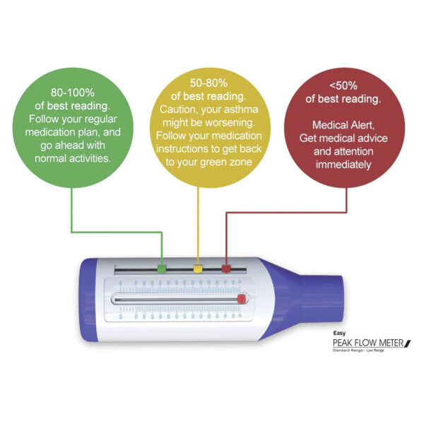 A Peak Flow Meter measures air flowing out of the lungs and can reveal narrowing of airways well in advance of an asthma attack.