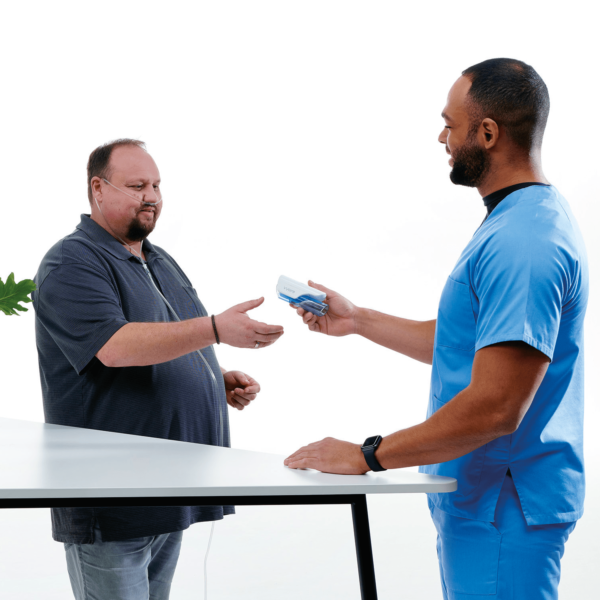 AioCare is a professional system to monitor and treat pulmonary diseases, consisting of a portable hospital-grade spirometer connected to a smartphone app and an online panel to access the results. The device enables a full spirometry test to be conducted in a doctor’s office, including a bronchial challenge workflow. If monitoring needs to go beyond the healthcare system, AioCare may be used for patients at home.